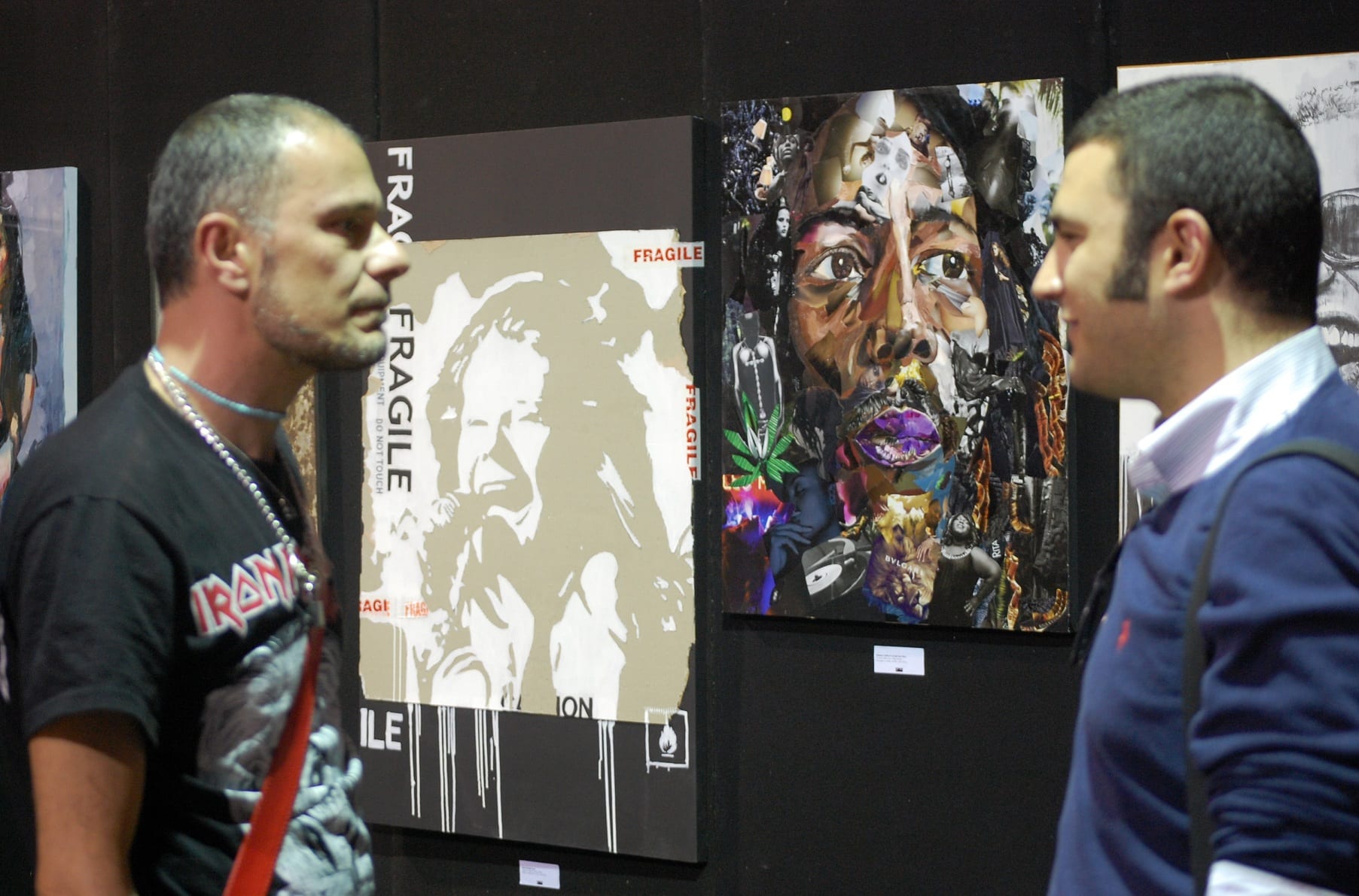 Il momento può esser propizio per ammirare la mostra “The Icons – i volti della musica” a cura di Nello Arionte promossa in collaborazione con PromuoviamoArte: una chiacchierata veloce con il curatore che con dovizia di particolari illustra ai presenti le opere nate dall’ingegno e dalla passione degli artisti, alcuni reduci dalla biennale di Venezia. Il suo racconto guida i presenti tra i meandri delle creazioni, illustrando le tecniche compositive, le innovazioni, la fantasia, il gusto, le linee guida di una forma d’espressione che oggi come ieri cerca strade ancora inesplorate: dai frammenti della pop-art a materiale post-impressionista, i volti di Kurt Cobain, David Bowie, Amy Winehouse, Janis Joplin, Ray Charles, Jimi Hendrix e tanti altri (per un totale di 15 opere esposte sembrano prendere vita proprio grazie alle parole spese, alle energie impiegate.