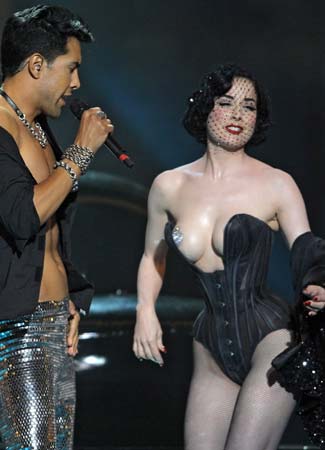Ancora uno spettacolo di burlesque per Dita Von Teese che questa volta si è svolto a Mosca, allo Stadio Olympiisky in occasione della finale dell’Eurovision ( festival musicale europeo).