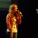 Aprono in una coreografia total white Chantal Manenti e Stefano Gelmini con “Insegnami”, colonna ufficiale della manifestazione, dopo di loro si alternano Mietta di nero vestita con “Baciami adesso” e Andrea Mirò che, elegante come sempre, imbraccia la chitarra. Una sferzata di vento porta in scena una delle artiste più attese, Anna Oxa con il suo look provocante e trasgressivo che riempie la scena: dolcevita fucsia, capelli neri e movenze new-zen molto teatrali. Saluta il pubblico e prima delle note di “Tutto l’Amore Intorno” e “La mia Anima d’Uomo” ricorda ai carnivori che cibarsi di carne animale “fa male al corpo e allo spirito”. Esibizione intensa e mai scontata cui segue quella della giovane bresciana vincitrice di SanremoLab, Maya. “Sbalzo di Colore” porta sul palco con un turbinio di fiori e freschezza il nuovo singolo di Syria che torna all’amato pop e annuncia l’arrivo di un nuovo disco.