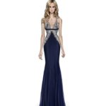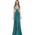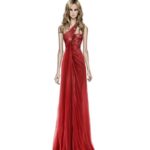 Secondo abito mostrato è un monospalla rosso fuoco anch’esso tempestato da delle piccole pietre e paillettes che illuminano il tutto. Ci troviamo davanti a pura seta color rosso che sicuramente creerà un profondo stacco visivo con la carnagione e le tonalità chiare di Bar Refaeli. Anche questo sembra essere un abito davvero splendido con molti tocchi raffinati che elevano ancor più l’eleganza intrinseca del vestito stesso. Passiamo al terzo abito di colore blu profondo dove vi è un gioco di geometrie in contrasto proprio con il corpetto dell’abito. Anche qui non mancano di certo le paillettes. Personalmente colpisce leggermente meno dei primi ma, di nuovo, una promozione a pieni voti.