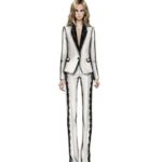 Ultimo abito è un tuxedo di seta color avorio impreziosito da inserti di pizzo nero. Paillettes anche in questo caso ma sparse in modo molto raffinato. Insomma dei pantaloni ci volevano proprio e finalmente vedremo un bel tailleur a pantaloni. Questo merita un punto in più proprio per l’audacia con cui Roberto Cavalli ha pensato di presentare Bar Refaeli in pantaloni anche se, su questo siamo certi, la star indosserà tutti e quattro gli abiti con una raffinatezza invidiabile. Non vediamo già l’ora di vederla in quel di Sanremo 2013.