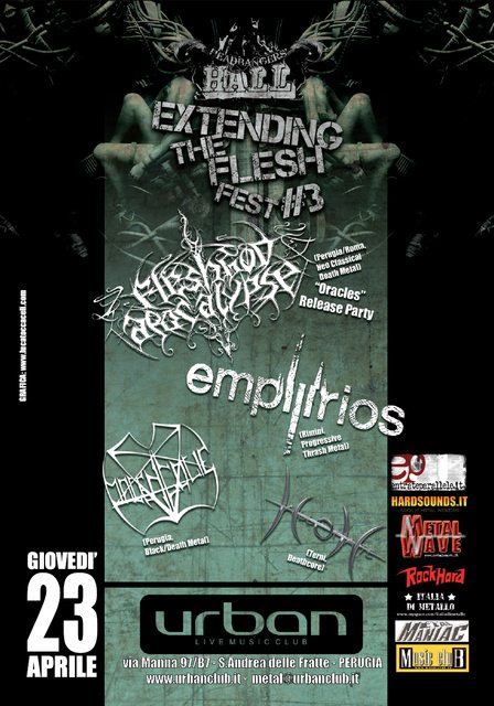 Giovedì 23 Aprile si svolgerà presso l’ Urban Club di Perugia la Terza edizione dell’EXTENDING THE FLESH, mini festival dedicato alle sonorità più dure dell’ hard ‘n heavy.