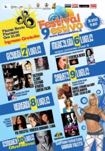 Manca poco più di una settimana per le fasi finali del Festival Estivo, evento nato per dare voce ai giovani artisti emergenti e giunto ormai alla sua nona edizione. Il Festival è patrocinato dal Parlamento Europeo, dal Governo-Ministro della Gioventù, dal Ministero del Turismo, dall’ANCI e dalla Provincia di Livorno e dal Comune di Piombino. La fasi finali avranno luogo dal 7 al 9 Luglio a Piombino (Li).