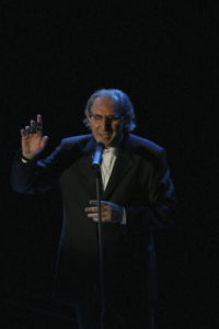 Franco Battiato | © Giuseppe Cacace/Getty ImagesFranco Battiato con la tappa al Rock in Roma, ha dato il via al suo nuovo tour, quel “Up patriots to arms!”, che lo riporta sulle scene musicali. Dal palco dell’ippodromo delle Capannelle, lui, che è da sempre un grande sperimentatore, ha offerto un concerto intenso e affascinante aperto dal brano che da il titolo all’intero tour che proseguirà con numerose date in giro per l’Italia, fino alla tappa di Torino del 15 Settembre. Da sempre precursore di tendenze, Franco Battiato è salito sul palco in piena forma mostrandosi sensibile come sempre, anche ai temi politici e culturali: ha dedicato al giornalista Marco Travaglio, presente tra il pubblico, il brano “Inneres Auge”, che denuncia il malcostume della politica, la mancanza di giustizia in una società dove “regna solo il denaro” e “la giustizia non è altro che una pubblica merce”. E’ toccato poi a “Gli uccelli”, “La cura”, “Povera patria”, tra gli altri, per una carrellata di una trentina di pezzi con cui il cantautore siciliano ha riperscorso la sua lunga carriera. Ne aveva parlato già prima dell’inizio del tour, annunciando che per i suoi live avrebbe attinto al materiale degli anni passati, magari riarrangiandoli e lo ha fatto nella serata di Roma per esempio con”La cura“,che di sicuro rientra tra i suoi pezzi più celebri. Battiato qualche tempo fa aveva confessato di credere in un risveglio della gente e a Sky Tg24 ha detto: “Sono uno che ama il progresso della gente. Sono entusiasta se ci sono pensieri, anche rivoluzionari, che fanno bene al Paese“. Vi lasciamo ora ad alcuni video del concerto al Rock in Roma, con “La cura”,”Povera Patria” e “Il ballo del potere”
