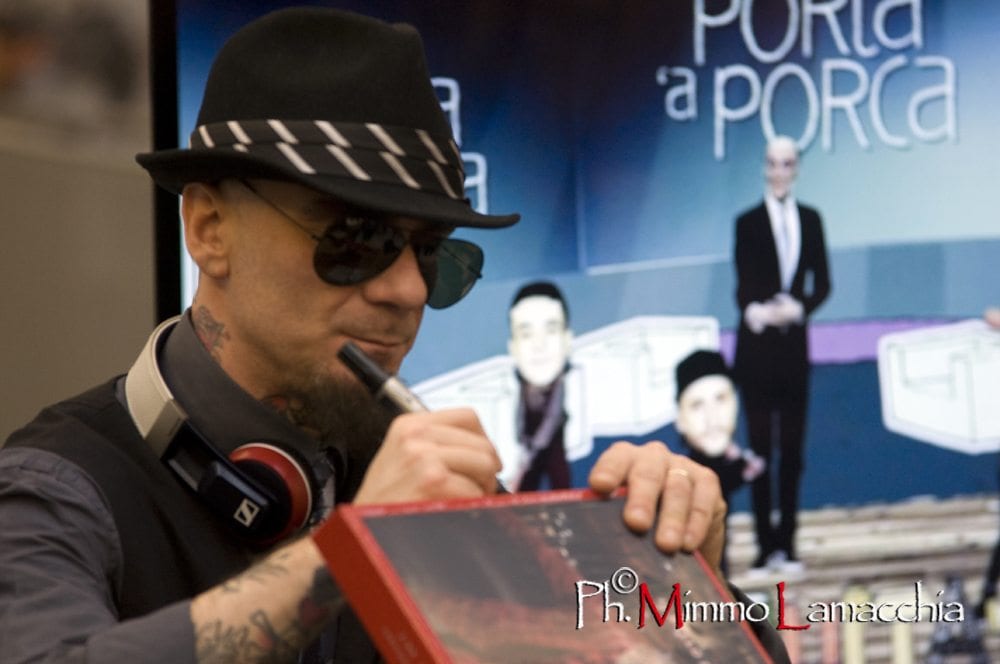 Con cappellino, occhiali da sole e tanta simpatia da vendere, Alessandro Aleotti, questo il vero nome di J-Ax, si è presentato ai suoi nipoti (l’artista chiama così i suoi fan) per una foto ricordo, firmare e autografare centinaia di copie del suo nuovo album.