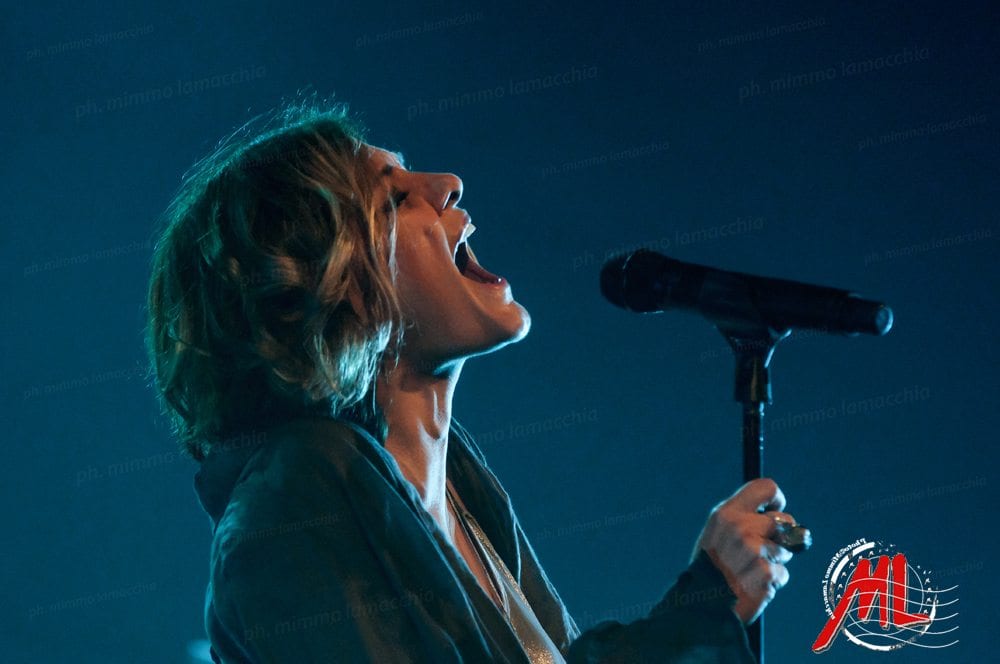 E’ il momento dei pezzi forte della serata, il brano “Prima di partire per un lungo viaggio” scritto per lei da Vasco Rossi e Gaetano Curreri, accompagnata dal violoncello che impreziosisce la canzone in modo particolare.
