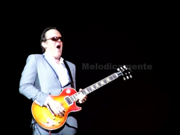 Puntuale come un orologio svizzero, Joe Bonamassa è salito sul palco accompagnato dalla sua band di eccellenze, dimostrando fin dalle prime note la sua straordinaria bravura. E non si possono avere dubbi in merito, nemmeno oggettivamente, considerato che a 12 anni il sig. Bonamassa saliva sul palco con B. B. King. E il blues lo ha imparato dal migliore, si sente. Ma non disdegna il rock nudo e crudo.