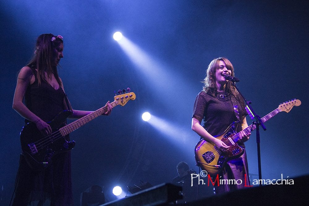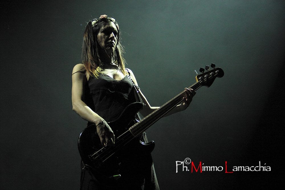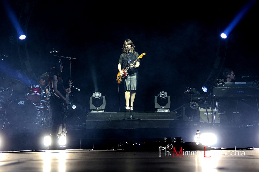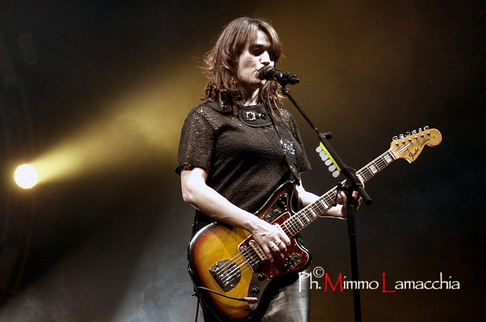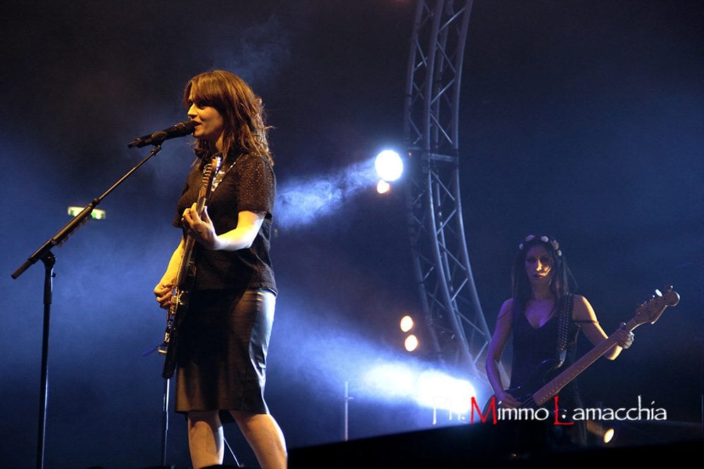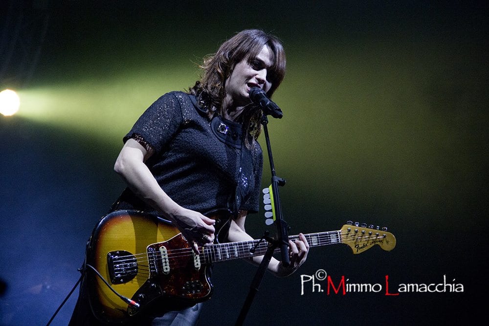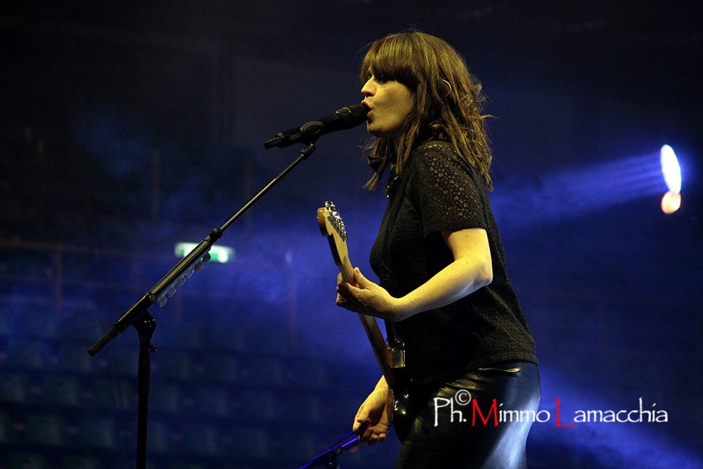 Poco dopo le 21, si son spente le luci e i musicisti hanno fatto il loro ingresso sul palco, dominato dalla presenza scenica della bassista Luciana Luccini, illuminata dall’alto solo con un fascio di luce. Subito dopo tra gli applausi e il boato generale è entrata in scena Carmen Consoli, vestita in total black con tacchi vertiginosi e abbracciando la sua immancabile chitarra, interpretando il brano “La signora del quinto piano” tratto dal suo ultimo lavoro “L’abitudine di tornare” un album che segna il ritorno on stage della Cantantessa. L’inizio del live è scoppiettante, seguono “Per niente stanca” e “Besame Giuda” con la Consoli in splendida forma, libera nella sua innata anima rock, avvolgente e passionale con quella vena poetica, che emoziona e coinvolge, forse statica sul palcoscenico, ma sempre profonda e di corsa nel cuore.