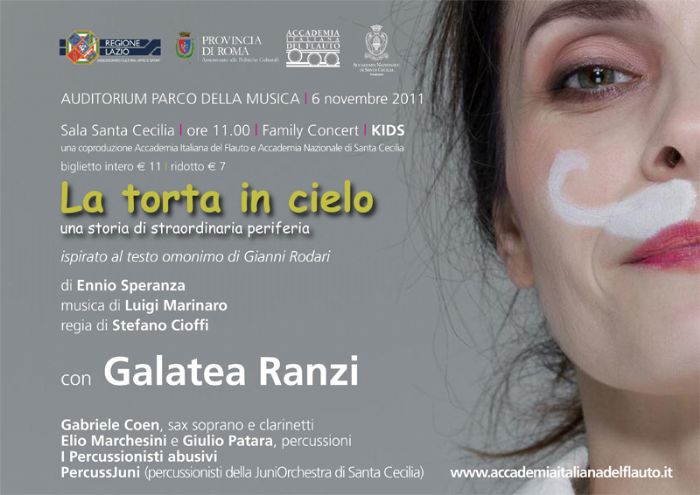 Il 6 Novembre scorso la sala grande del Parco della Musica a Roma si è riempita di ragazzini che sono venuti a sentire “La torta in cielo“, una delle più belle storie di Gianni Rodari, adattata da Ennio Speranza e trasformata in un concerto molto ritmico e dai toni quasi jazz, grazie all’uso sapiente del sax e del clarinetto.