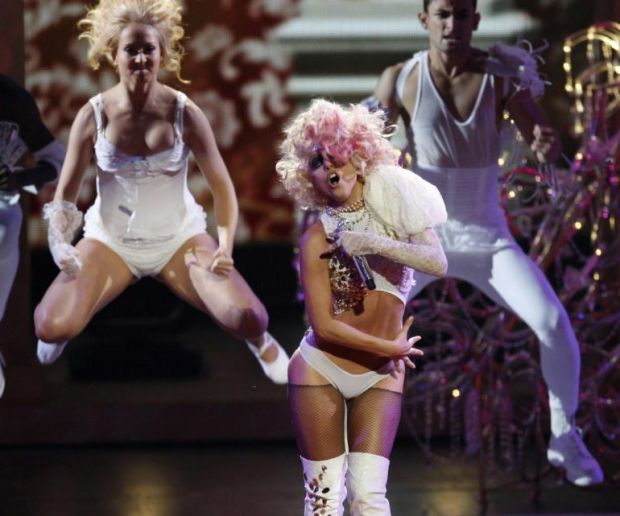 Dopo aver vinto nella categoria Best New Artist con Poker Face, Lady GaGa si è esibita in Paparazzi ( il cui video aveva suscitato non poche polemiche) tra sangue, pianti, trasgressione e balletti.