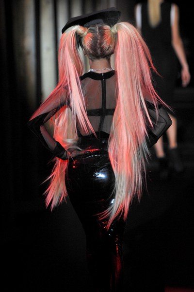 Lady GaGa ha fatto il suo ingresso sulla passerella come una vera diva indossando un abito perfettamente nel suo stile sfilando non solo per fare pubblicità all’amico Nicola Formichetti, nonchè direttore creativo della griffe, ma ha sponsorizzato “Government Hooker“, il suo nuovo singolo estratto dall’album “Born this way“, che ha utilizzato come colonna sonora della sfilata.