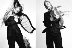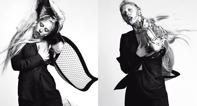 L’inizio anno, per l’artista, è avvenuto all’insegna della provocazione e questa volta lo fa affidandosi all’arte contemporanea. Scatti in bianco e nero, con strutture metalliche e robotiche che la fanno sembrare, quasi, ad una extraterrestre, ad una creatura futuristica. Miss Germanotta posa a seno nudo con una giacca aperta e pantaloni attillati ma anche a schiena nuda e con espressioni molto particolari, sofferte e che, vogliono essere artistiche. Indossa una giacca Yves Saint Laurent, pantaloni Chanel e cappello Philip Treacy che sembrano assolutamente minimali rispetto all’impatto complessivo delle fotografie.