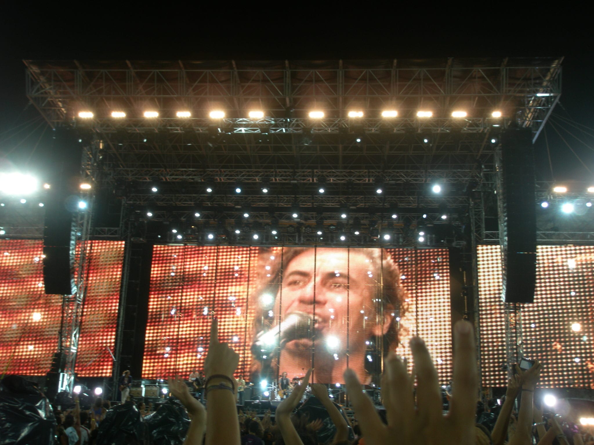 La scenografia era dominata da maxi schermi su cui scorrevano le riprese le del palco o, durante alcuni pezzi, altre immagini significative. Particolamente emozionante quando, durante “Buonanotte all’Italia“, cantata sulla lunga passerella che dal palco portava praticamente tra la folla, sono comparse le immagini degli italiani più illustri, da Totò a Rita Levi Montalcini, fino a Falcone e Borsellino che hanno ricevuto l’ovazione del pubblico. Sempre sulla passerella Ligabue ha anche cantato “Sogni di rock’n’roll” e “Il peso della valigia“, pezzo durante il quale ha aperto una valigia da cui è uscito un turbinio di coriandoli colorati. Un altro momento particolare è stato quando, durante “Questa è la mia vita” ha fatto salire sul palco una ragazza del pubblico, naturalmente invidiatissima. Dopo quasi due ore e mezza di spettacolo il Liga ha concluso il concerto con un messaggio di speranza, con “Il meglio deve ancora venire“. Infine, come all’apertura, le note di “Taca Banda” hanno fatto urlare a squarciagola i 50.000 fan del San Filippo.