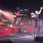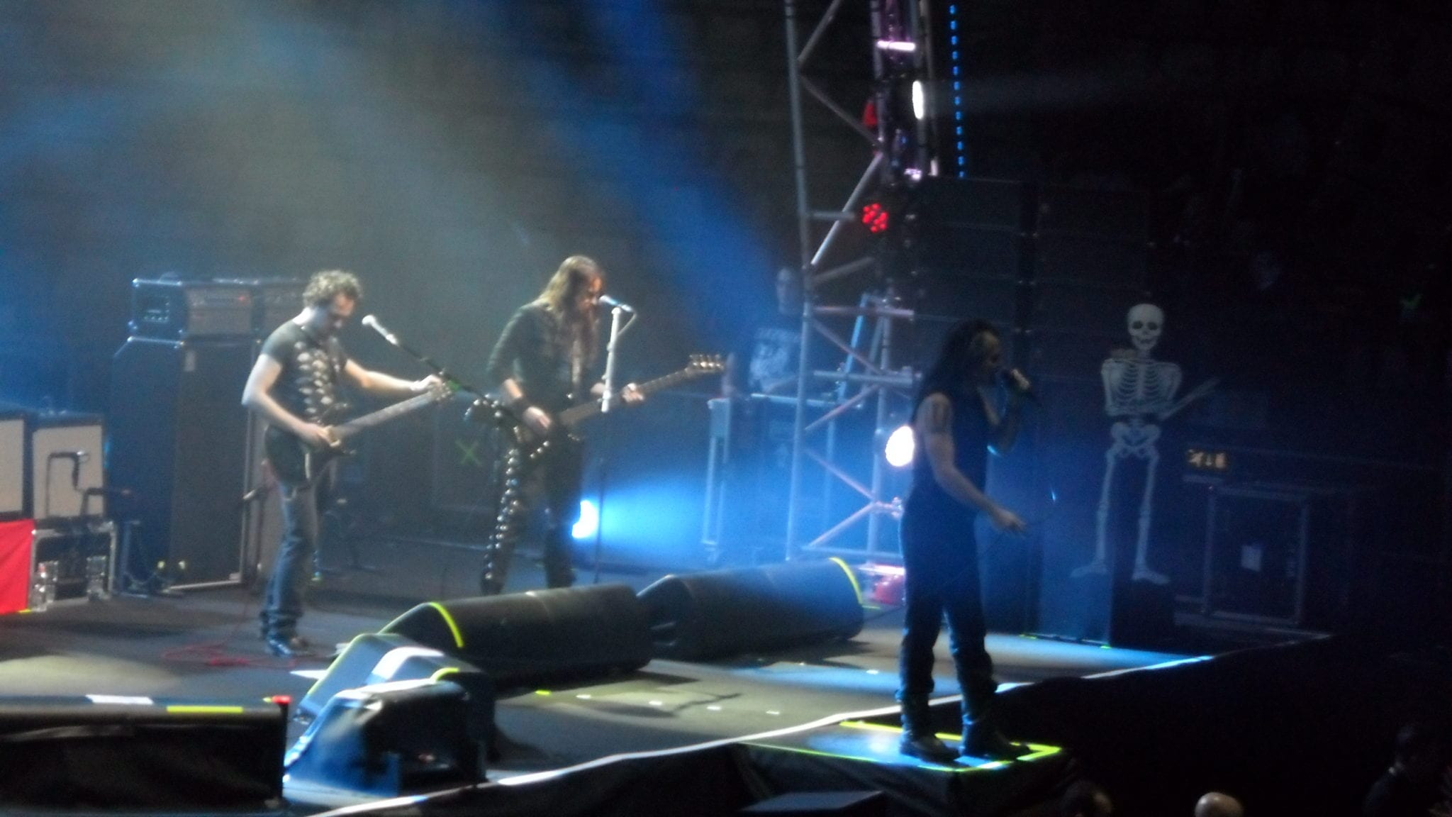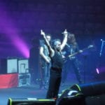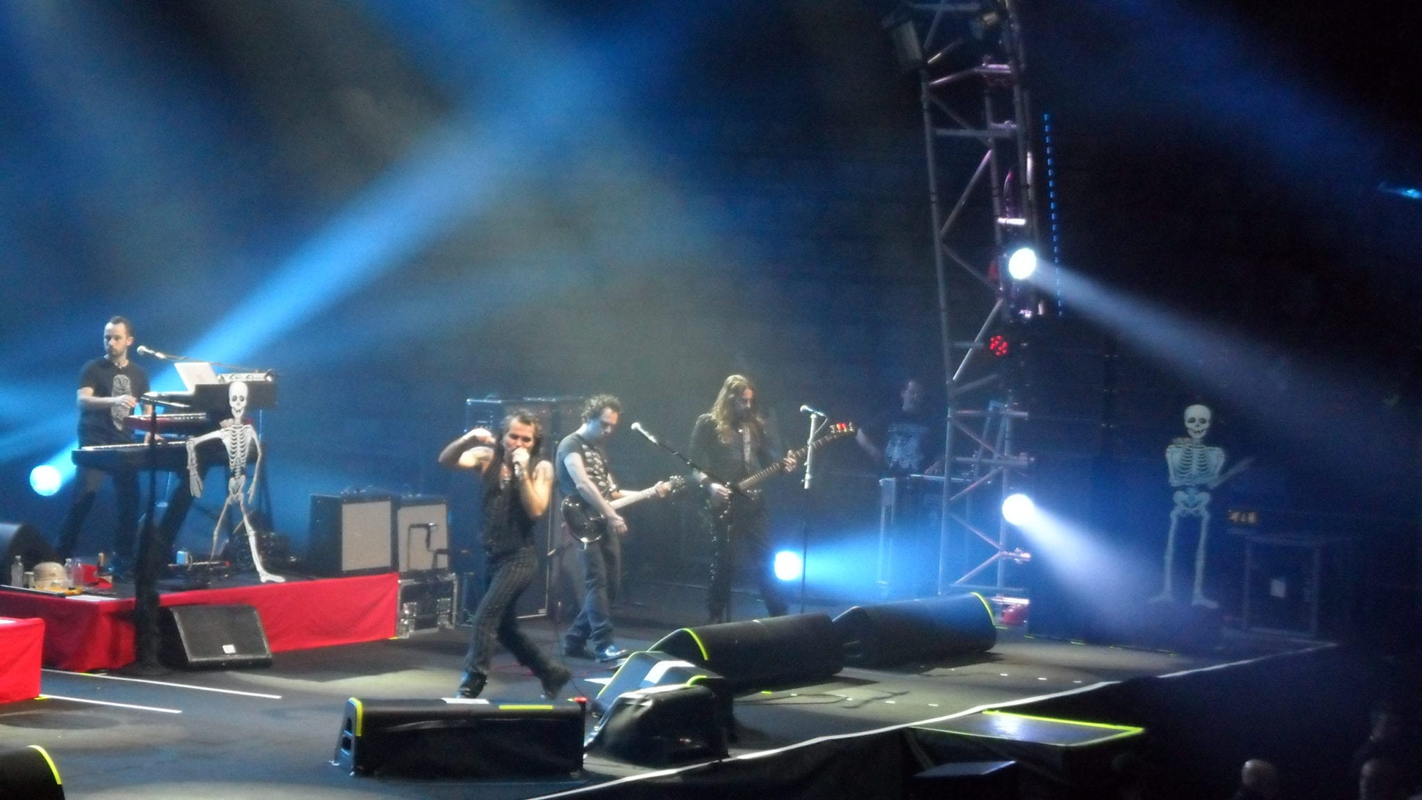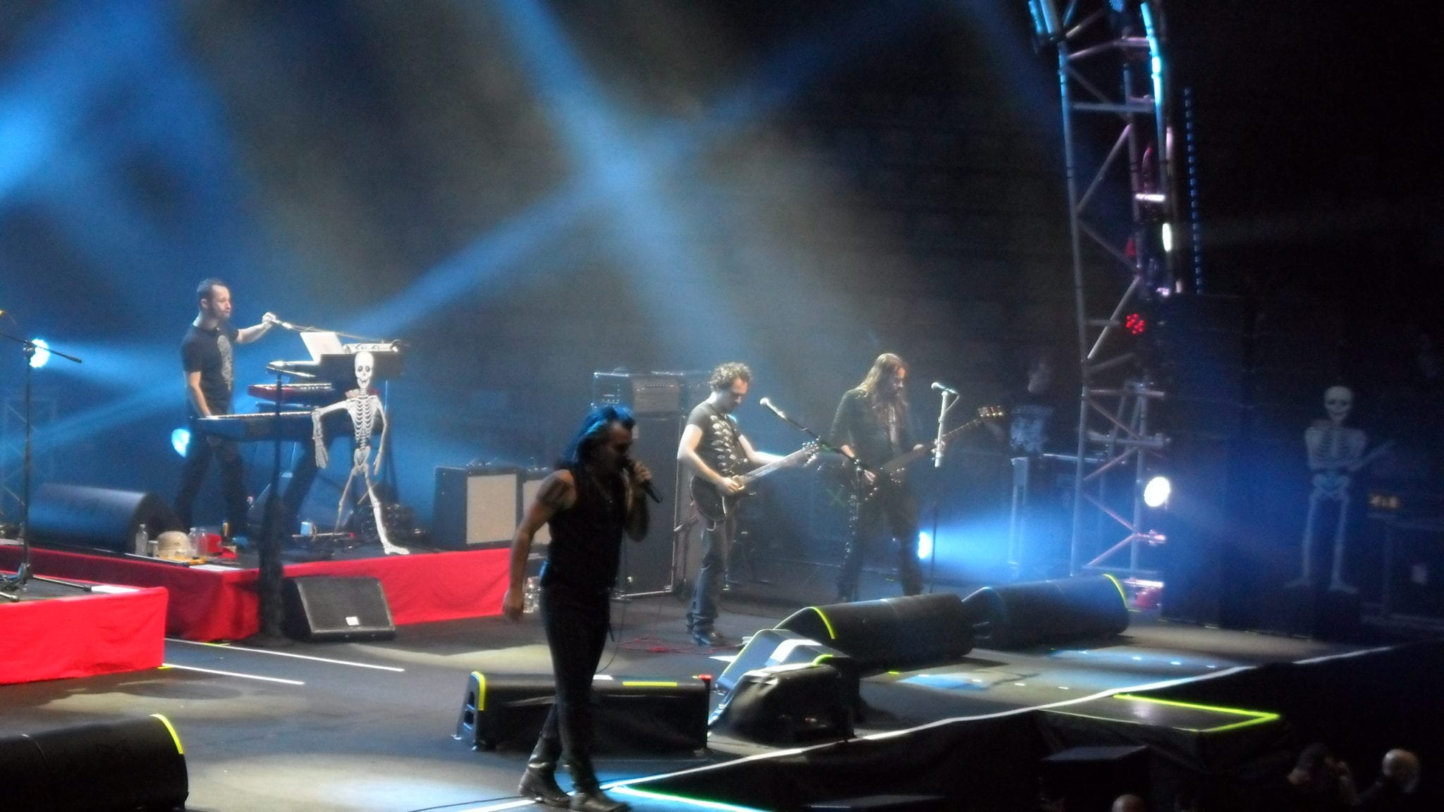 Con il suo teschio in mano, Piero Pelù esegue uno dei brani più suggestivi della scaletta, poi l’atmosfera cambia di nuovo e il pubblico si scalda davvero, perché è tempo di passare ai brani storici del gruppo: “Gioconda” emerge direttamente dall’inizio degli anni Novanta, estrapolata da “El Diablo” si fa seguire da “Cane”, e si rispolverano i vecchi ritmi con “Cangaceiro” e poi si ritorna al presente, con “Elettrica” subito dopo il bis. Qui il pubblico ha il tempo di calmarsi prima di un altro pezzo, tra i più suggestivi mai realizzati dai Litfiba. Si tratta di “Fata Morgana”, seguita a sua volta da un altro salto nel presente: “Sole nero” è il simbolo del ritorno di Piero e Ghigo Renzulli, acclamato dal suo pubblico più volte nel corso dello spettacolo, in perfetta sintonia con lo storico amico, senza il quale non si potrebbero di certo immaginare i Litfiba. Riascoltando soprattutto i vecchi pezzi, non si può fare a meno di ricordare quanto ci siano mancati i Litfiba in tutti questi anni, ce lo ricordiamo soprattutto nell’intonare la movimentata “Lacio Drom”, con la quale Piero vuole ringraziare tutti coloro che hanno fatto i chilometri per andarli a vedere.