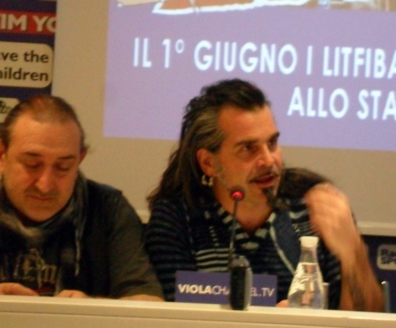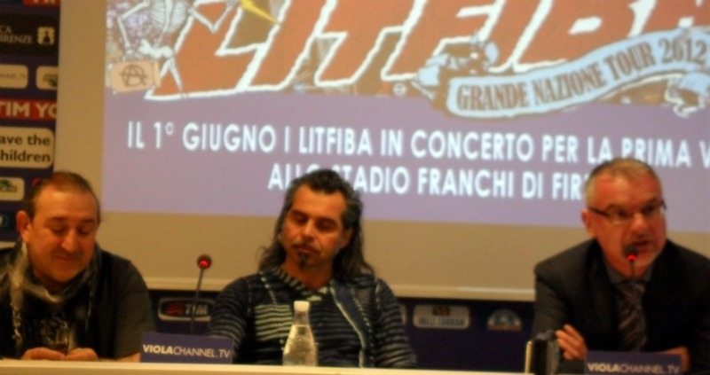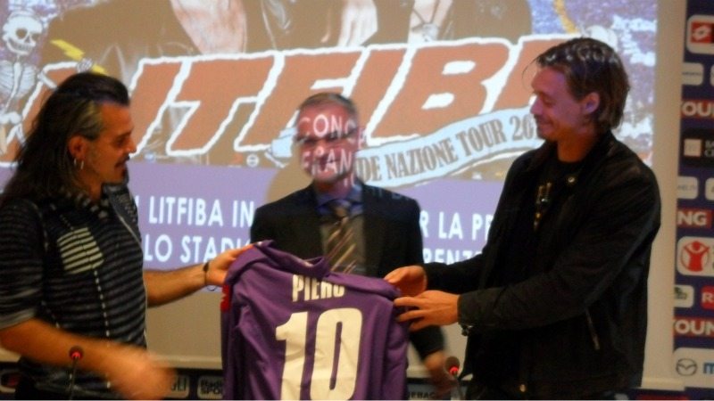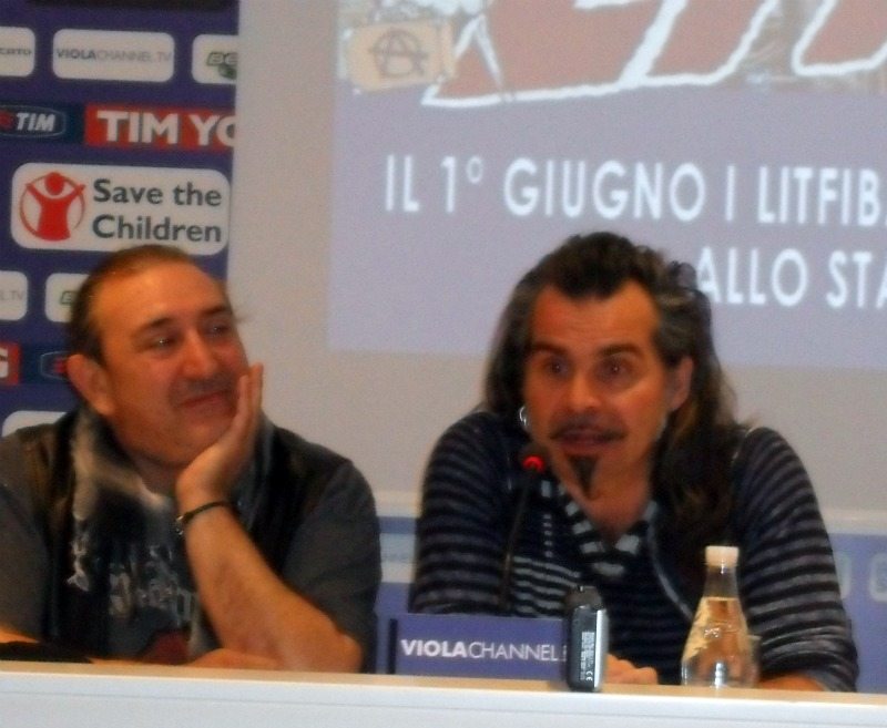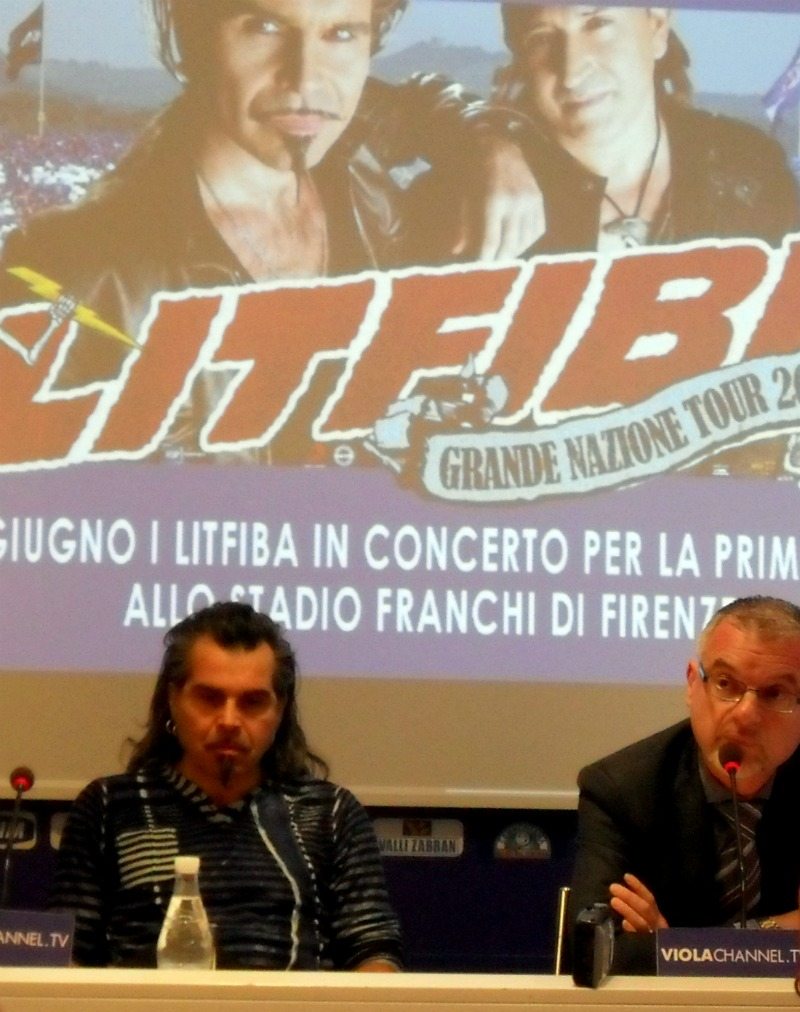 Oggi allo Stadio Artemio Franchi di Firenze, i Litfiba hanno presentato il loro concerto-evento che si terrà il prossimo 1 giugno proprio allo Stadio, luogo simbolico della città di Dante, soprattutto per i fan sfegatati della Fiorentina. Piero Pelù e Ghigo Renzulli hanno incontrato la stampa, presentati da Gian Luca Baiesi, Direttore Esecutivo di ACF Fiorentina, e il calciatore Per Kroldrup.