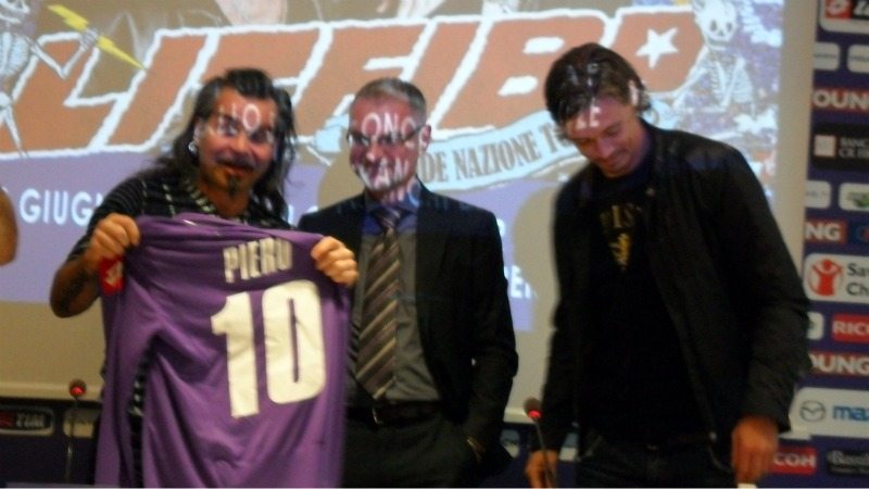 Ghigo Renzulli e Piero Pelù ricevono le maglie viola | © Melodicamente