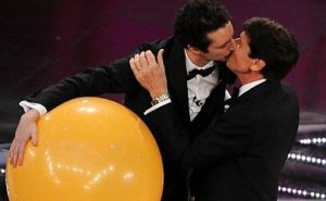 Questo il bacio di Luca a Gianni Morandi e a seguire il video di “Grazie perchè” nella verisone di Luca e Paolo.