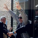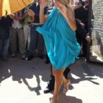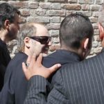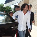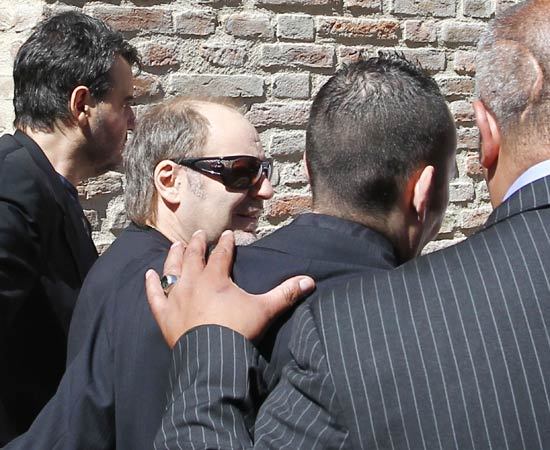 Le due ex-veline di Striscia, sono arrivate insieme entrambe vestite di turchese; lo sposo invece ha indossato una camicia bianca portata fuori dai pantaloni mentre Vasco, che pur scegliendo un look total black, non ha rinunciato a giubbotto con cappuccio.