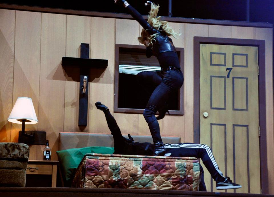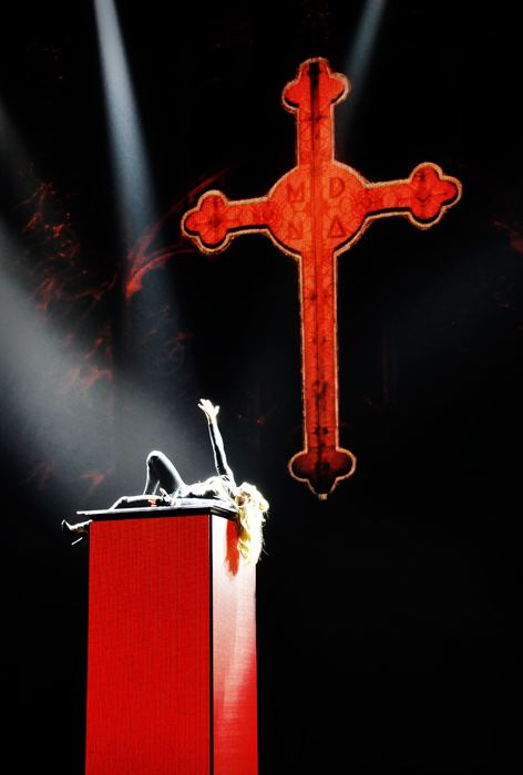 Nelle ultime foto si vede invece Madonna alle prese con quella che ha tutte le carte in regola per essere definita una rapina, con tanto di passamontagna e fucile, fino ad una immagine dove su sfondo nero vi è una gigantesca croce sotto la quale si trova la cantante sdraiata su un cubo, anch’esso rosso come la croce. Ambientazione che lascia proprio intravedere quanto ogni concerto di Madonna vuole essere tanti piccoli live dentro ad uno gigantesco e con l’obiettivo di lasciare senza fiato i presenti.