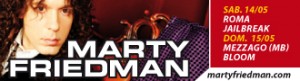 Marty Friedman, virtuoso chitarrista statunitense, delizierà il pubblico italiano con due imperdibili concerti: il 14 Maggio al Jailbreak di Roma e il 15 al Bloom di Mezzago.