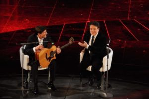 Dopo lo spettacolo con il duo comico Massimo Ranieri torna sul palcoscenico che lui stesso ha calcato per diverse volte come concorrente, per rilasciare un’intervista, tra una suonata e una cantata all’amico Morandi .