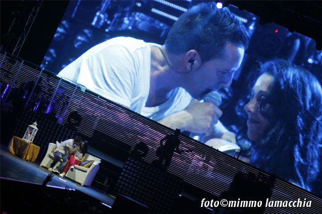Segue un medley molto bello, più rock, più grintoso con brani che vanno da “Meschina” a “L’amore è un’altra cosa” e concludersi con “Salvami“. A questo punto Kekko invita una ragazza del pubblico a salire sul palco, la fa accomodare su un divanetto bianco per poi intonare “Bellissimo” stringendola tra le braccia con la ragazza visibilmente incredula, emozionata e felice. Con “Arriverà” si scatena tutto il palazzetto che la canta in coro, per arrivare al medley acustico con Kekko, Diego e Zappa seduti a bordo pedana tra il pubblico che canta con loro brani come “A Laura“, ” Quello che non ti ho detto(scusami)“,”Ti amo veramente“.