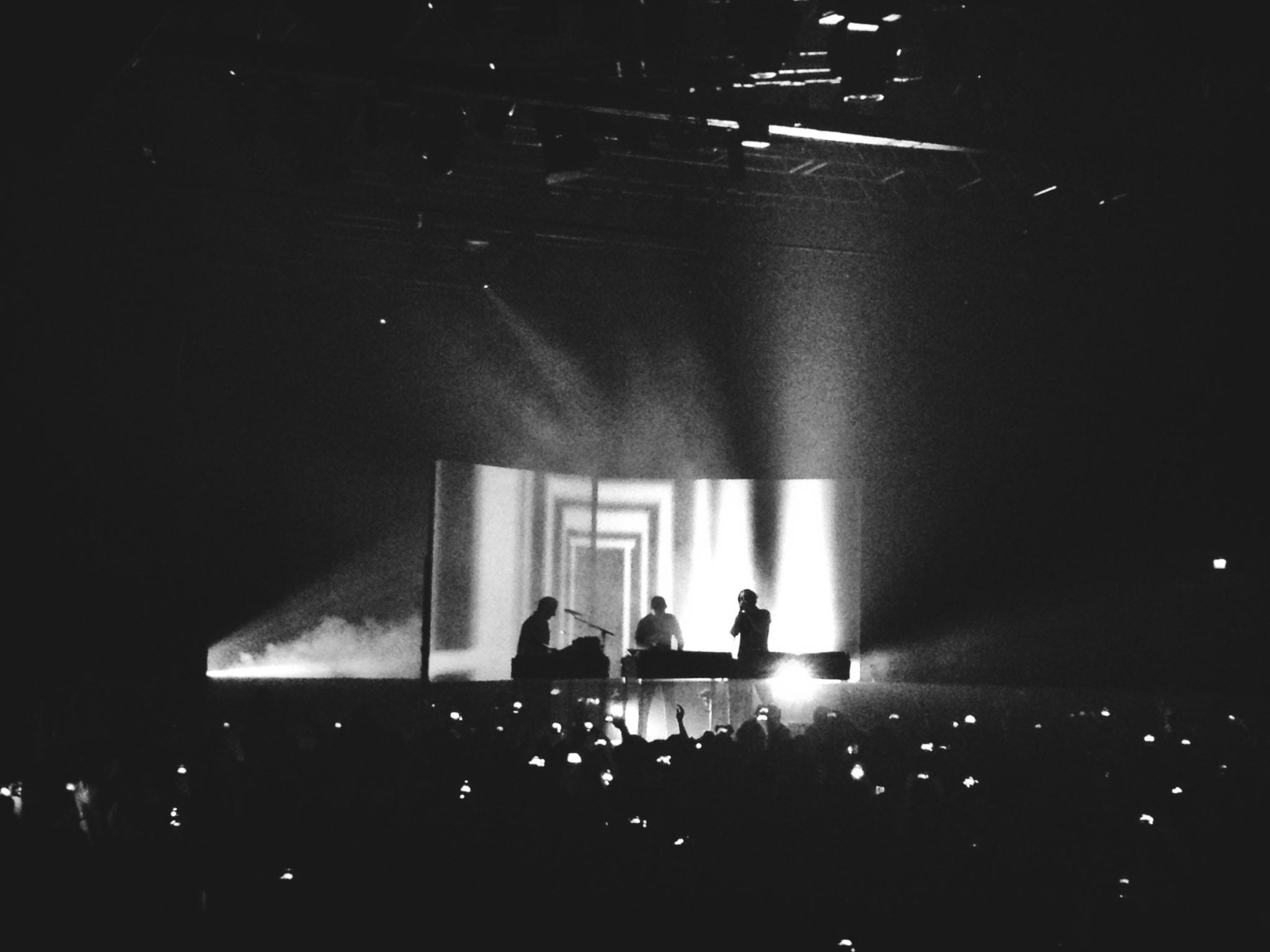 Nessuna sbavatura, solo un’interruzione causata da problemi tecnici che avvicina pubblico ai propri idoli, i quali dopo aver risolto i problemi tecnici sdrammatizzano annunciando il pezzo seguente intitolandolo “Get Lucky”. Seguendo la scia del successo però ad interrompere il bello della diretta è “Bad Kingdom“, brano di punta dell’ultimo lavoro discografico del trio berlinese. Come riuscire ad essere delicati e raffinati quando si tratta di musica elettronica? A mostrarcelo sono proprio i Modeselektor con Apparat, che ormai da un po’ di anni si divertono in questa collaborazione che ne vede delle belle. Vecchi successi come “Rusty Nails”, “A New Error” e “Le Grandes Marches” tengono il pubblico continuamente attivo, saltellando anche se distratto da un continuo movimento di smartphone rapito a riprendere la performance musicale di grande livello.