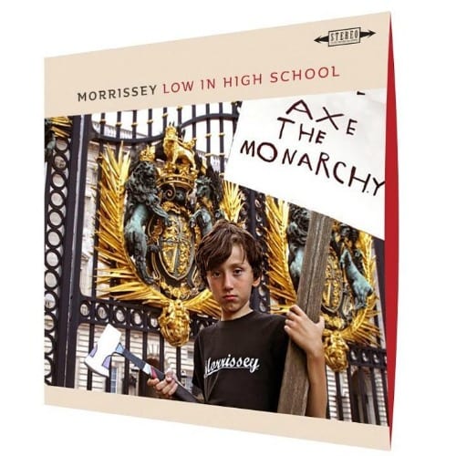 L’ultima polemica, in ordine cronologico, è dovuta alla copertina del suo ultimo album, “Low in high school“. Si vede l’inferriata del cancello di Buckingham Palace, simbolo della famiglia Reale che Morrissey tanto disprezza, e poi c’è un bambino. Che sarebbe il figlio del suo bassista, Mando Lopez. Indossa la maglietta con su scritto il nome del cantante, tiene in mano un’accetta e un cartello con su scritto “Axe the Monarchy”. L’uscita dell’album “Low in high school” è prevista per il 17 novembre, come ha ricordato anche Linder Sterling, la madre del ragazzino, Max Lopez, che si è detta fiera della foto.