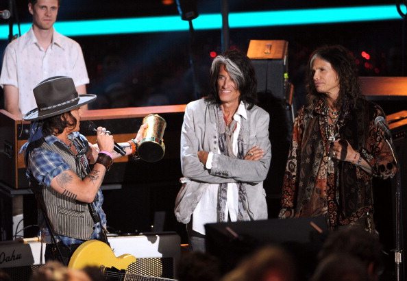 Johnny Depp e The Black Keys sul palco degli MTV Movie Awards | © Kevin Winter/Getty Images