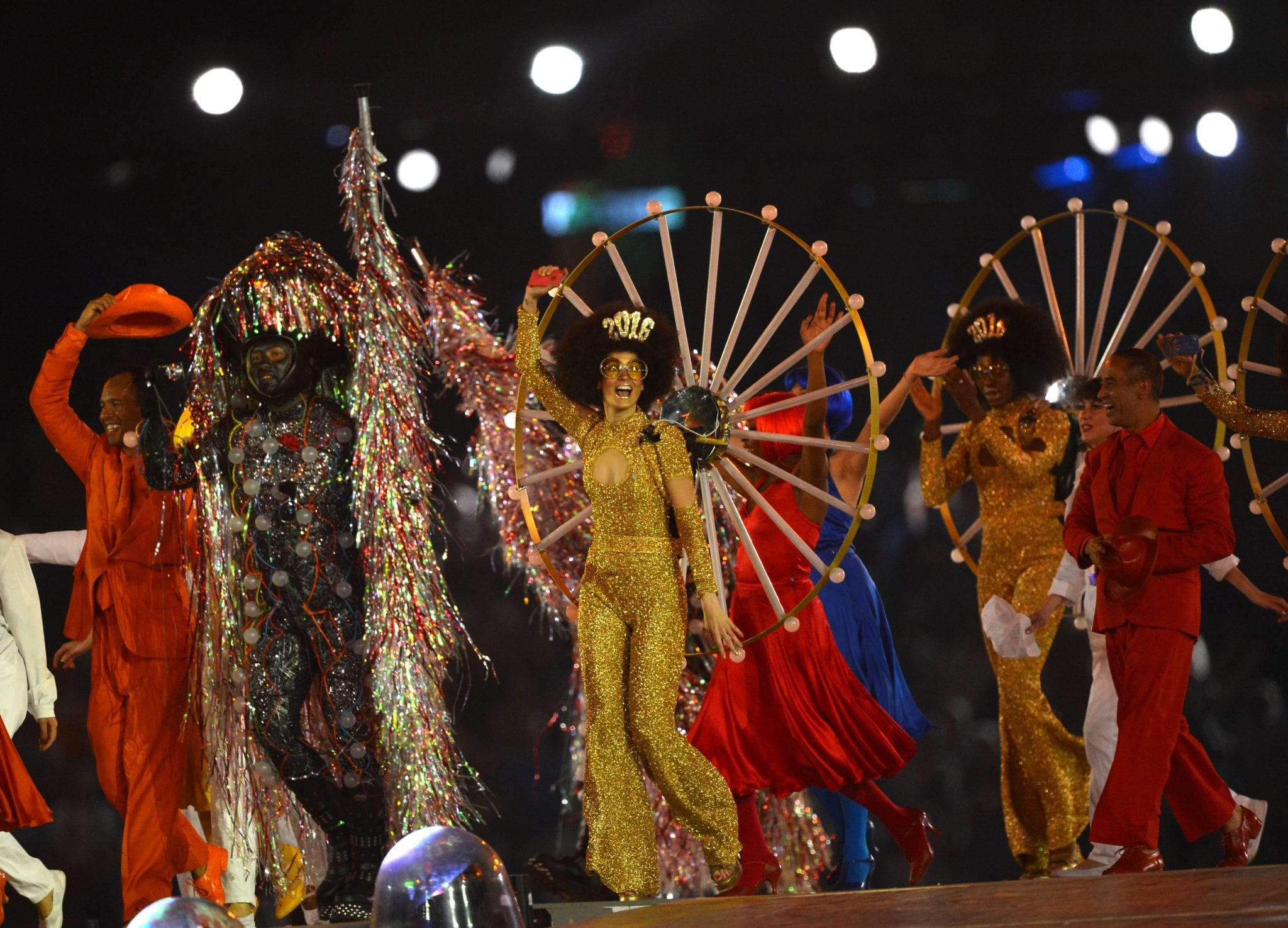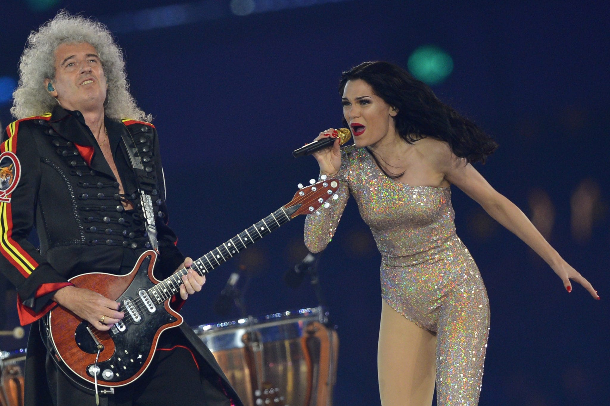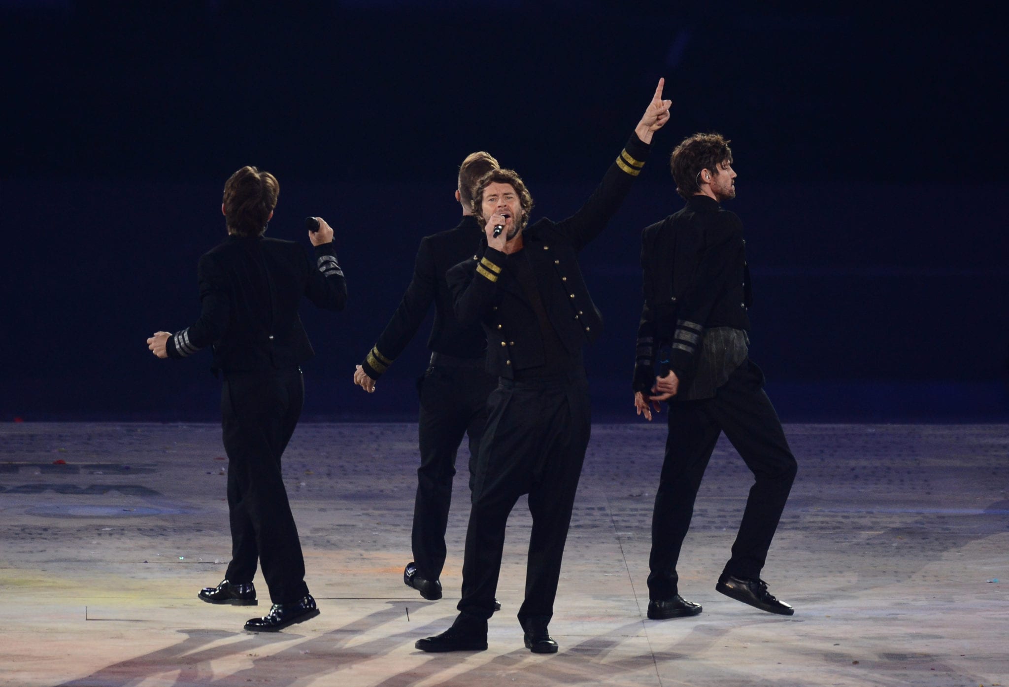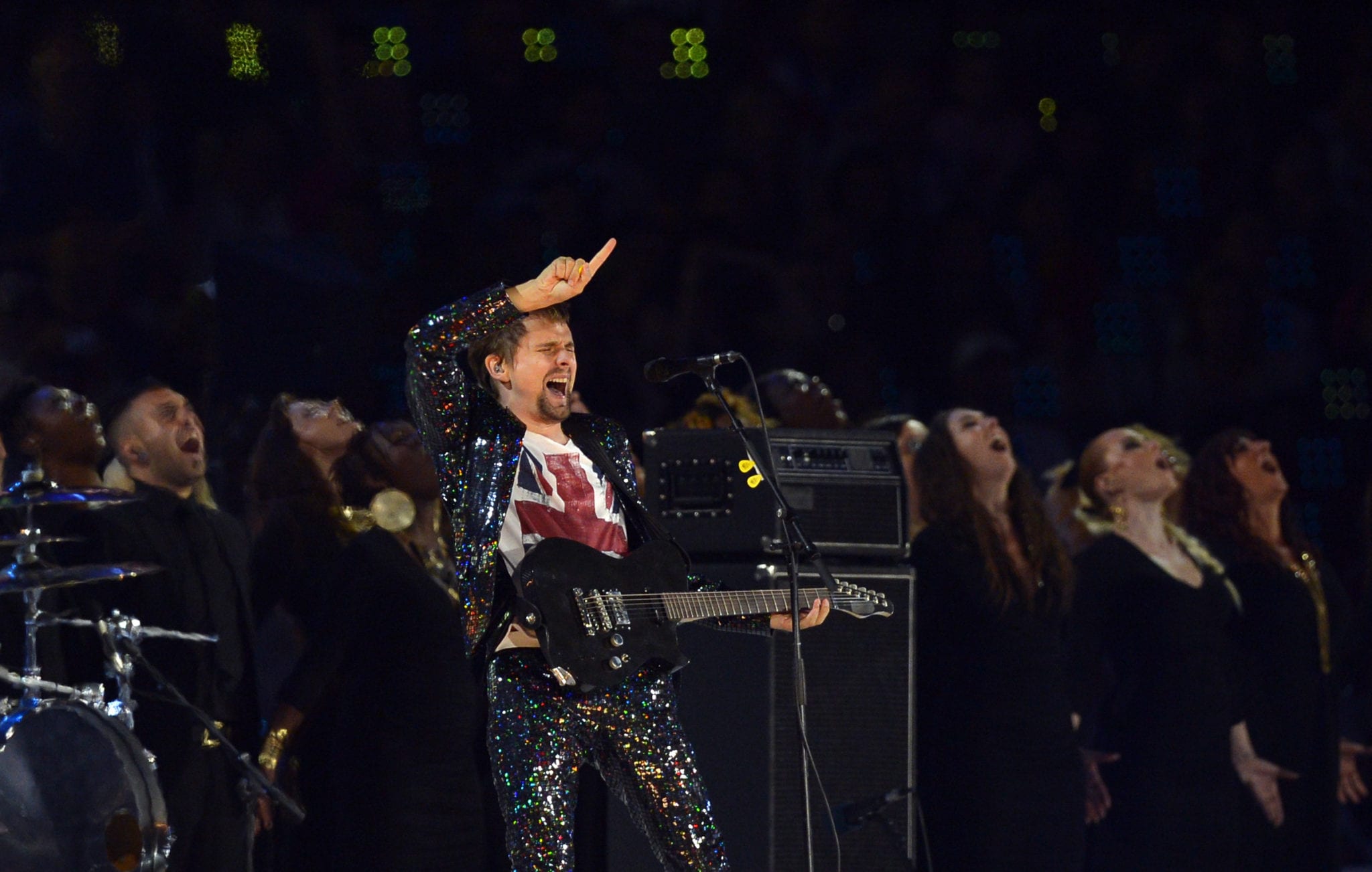 Giunge alle 00.10 uno dei momenti più attesi della serata, ossia quello dedicato ai Muse. Il trio non poteva che iniziare con il brano olimpico “Survival”. La band sale sul palco accompagnata dall’immancabile coro. Matt Bellamy si presenta con una t-shirt in perfetto stile UK e un completo luccicante. Dopo “Survival” è il momento di un “revival” visivo dedicato a Freddie Mercur: le esibizioni e i ricordi scorrono velocissimi con Brian May e Roger Taylor dei Queen, sempre per rimanere in tema che propongono la celebre “We Will Rock You” che rende lo stadio una vera e propria folla danzante. La voce per “We Will Rock You” è quella di Jessie J che sembra ormai essersi impossessata del palco. Dopo le varie performance canore ci si avvicina sempre più alla chiusura, la strada verso Rio de Janeiro che ospiterà i Giochi Olimpici 2016 viene racchiusa mediante l’inno olimpico anticipato dall’inno della Grecia, culla delle Olimpiadi.