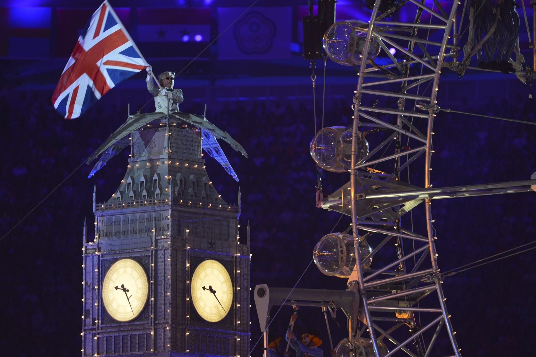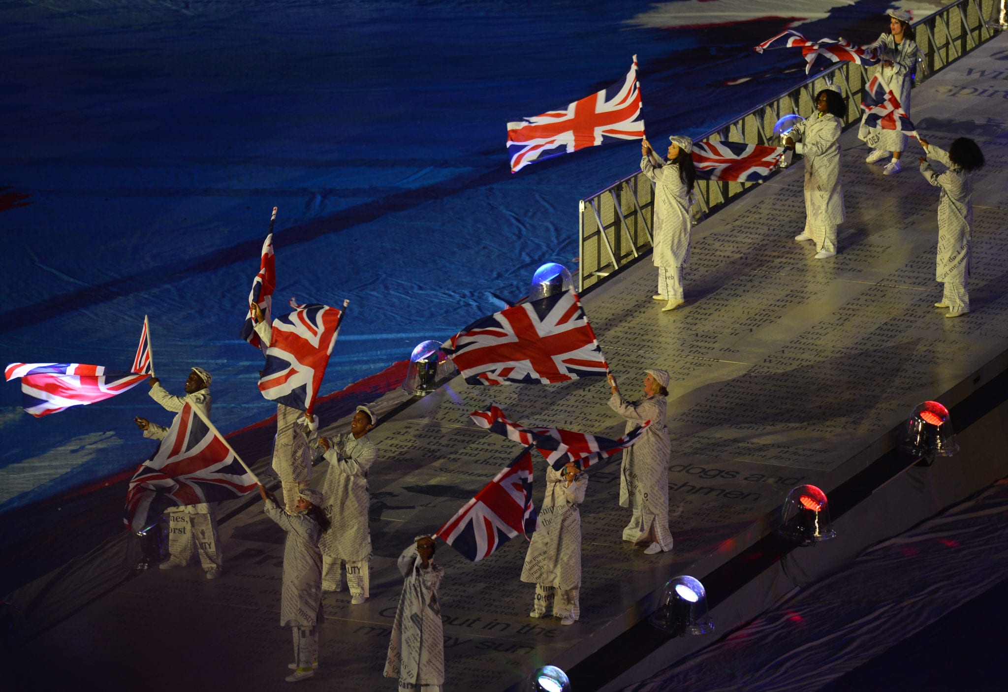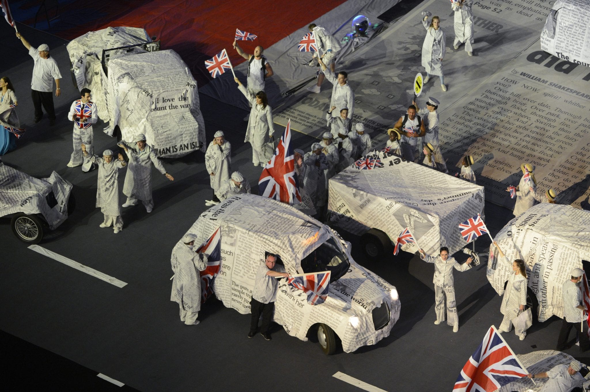 Tanto romanticismo e un pizzico di malinconia per la cerimonia che si dimostra davvero molto coreografica e in grado di far coesistere tipologie diverse di musica tutte in una stessa manifestazione: omaggio ai Blur con una versione riarrangiata di “Parklife” assieme ad una scenografia composta da volontari, come avevamo già avuto modo di segnalare, il tutto per creare uno spettacolo unico.