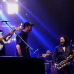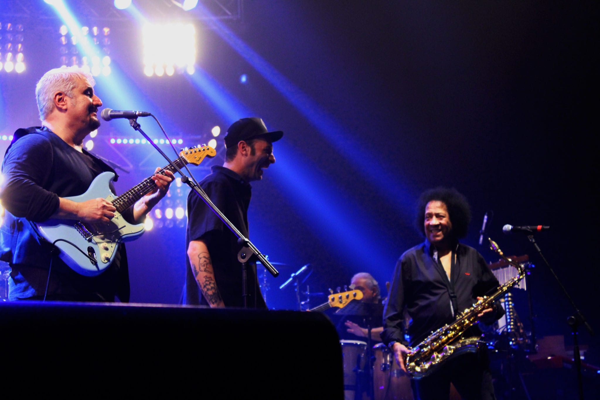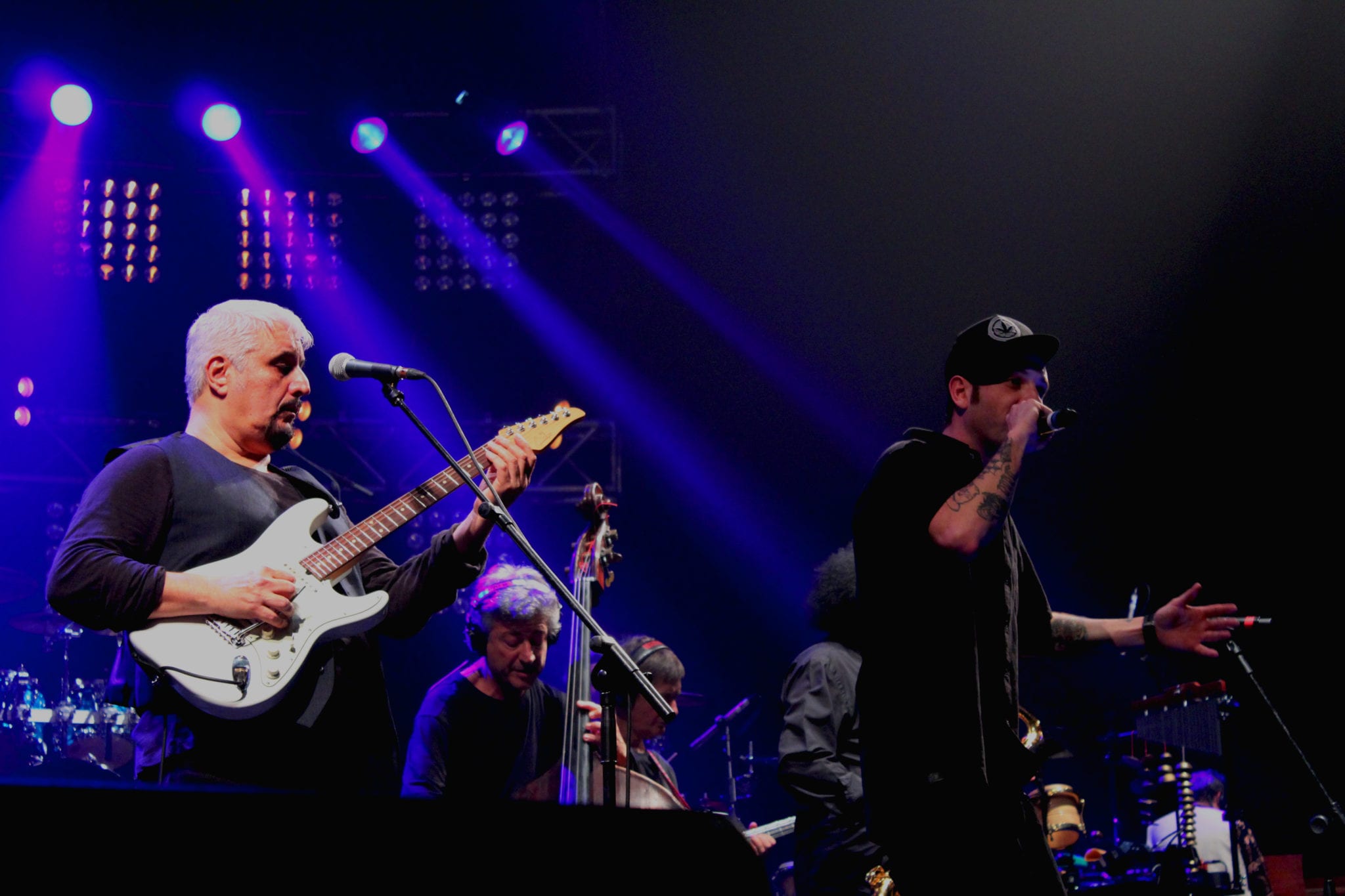 Gioca in casa il mascalzone latino e con lui gli amici di un tempo che si ritrovano sul palco del Palapartenope di Napoli la sera del 16 Dicembre (si replica questa sera) per dar spazio ad un sound che è il marchio di fabbrica di Pino Daniele. Ad attenderlo più di 3000 persone impazienti fino all’ultimo di vedere sul palco i protagonista della colonna sonora della loro vita. Si parte con “A testa in giù”, tono scherzoso ma consapevole dice al pubblico “Abbiamo trovato questo suono per caso e lo abbiamo portato avanti”. Ad accompagnarlo James Senese al sax, Ernesto Vitolo alle tastiere, Rosario Jermano alle percussioni, Rino Zurzolo al contrabbasso, Gigi De Rienzo alla chitarra che accompagna Pino Daniele sulle note di “Alleria”, “I got the Blues” e “Puozze passà nu guaio”, Agostino Marangolo alla batteria, Elisabetta Serio al piano e alle tastiere e la partecipazione di Tullio De Piscopo.