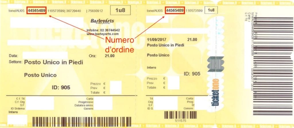 - Per i biglietti acquistati tramite Ticketone (sia sito che punti vendita) sarà necessario accedere al sito www.barleyarts.com e cliccare sulla sezione Cambio Nominativo. Selezionare l’evento dal menu a tendina e compilare il form in tutte le sue parti, senza dimenticare il numero d’ordine. In caso di acquisto in un punto vendita, il numero d’ordine è individuabile sul biglietto stesso. Se il biglietto è stato acquistato su Ticketone via web, il numero d’ordine è reperibile sulla mail di conferma ricevuta al momento dell’acquisto.