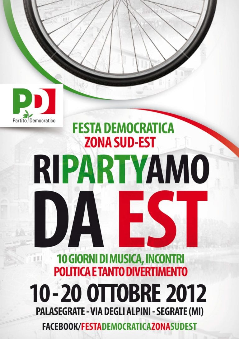 Si svolgerà dal 12 al 20 Ottobre la festa dei Democratici della zona Sud-Est di Milano dal titolo “Ri-party-amo da Est“. L’evento, che si terrà presso il Palasegrate (via degli Alpini, 34 – Segrate), rappresenta un momento di aggregazione culturale, con dibattiti, live painting e tanta musica dal vivo (dj set e concerti).