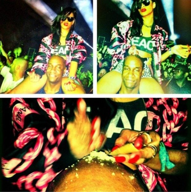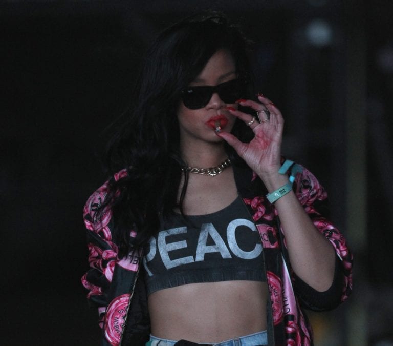 Oggi Riri è la protagonista del web per una serie di foto che stanno facendo il giro del mondo e che ha attirato l’attenzione anche delle maggiori testate mondiali. Lo scorso weekend la cantante ha assistito al Coachella Festival scatenandosi divertita sulle spalle del suo bodyguard indossando una camicia floreale con tanto di top con su scritto Peace. Ciò che ha provocato scandalo sono alcune foto che ritraggono della polvere bianca sulla testa del bodyguard.