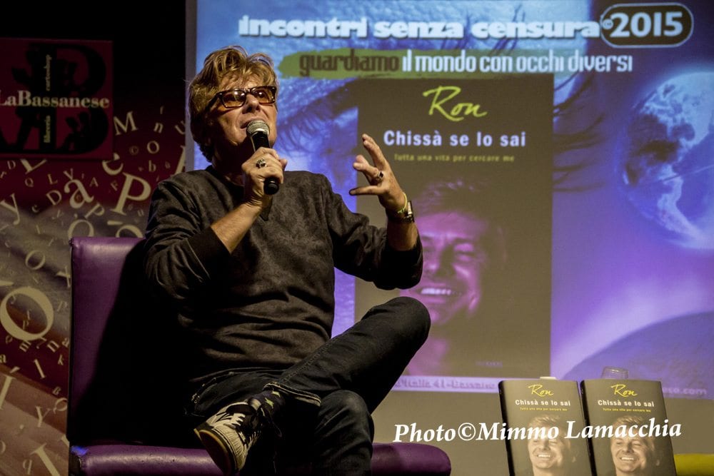 Nell’incontro a La Bassanese, moderato dalla giornalista Angelica Montagna, Ron si è presentato con grande umiltà, semplicità e simpatia, raccontando la sua vita, la sua carriera di artista e anche il suo cammino di uomo che ha vissuto momenti di felicità assoluta e momenti in cui si è perso in qualcosa di grande e doloroso. Si racconta a cuore aperto, come un uomo che si sente in ritardo, si è sempre sentito come quello che non riusciva a stare al passo, si sentiva inadeguato, era timido ma curioso. Da ragazzo veniva cacciato sempre dalla classe perché durante le lezioni, si distraeva e si spegneva.