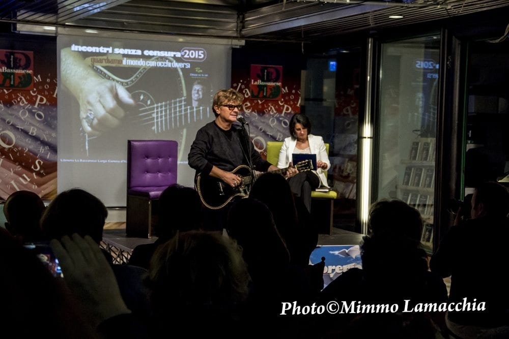 Italian singer song-writer Rosalino Cellamare better known as Ron met the audience and presented his new autobiography, "Chissà se lo sai - tutta una vita per cercare me" at the library "The Bassanese" in Bassano del Grappa.
