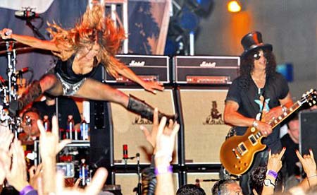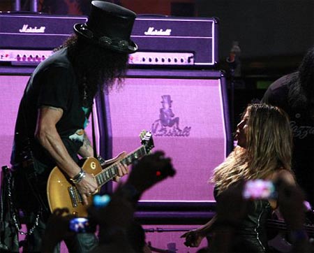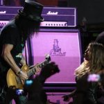 La bella cantante si è esibita con l’ex chitarrista dei Guns ‘n’ Roses al Sunset Strip Music Festival, affiancandolo sul palco in look molto sexy.