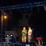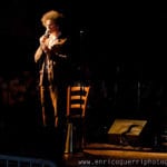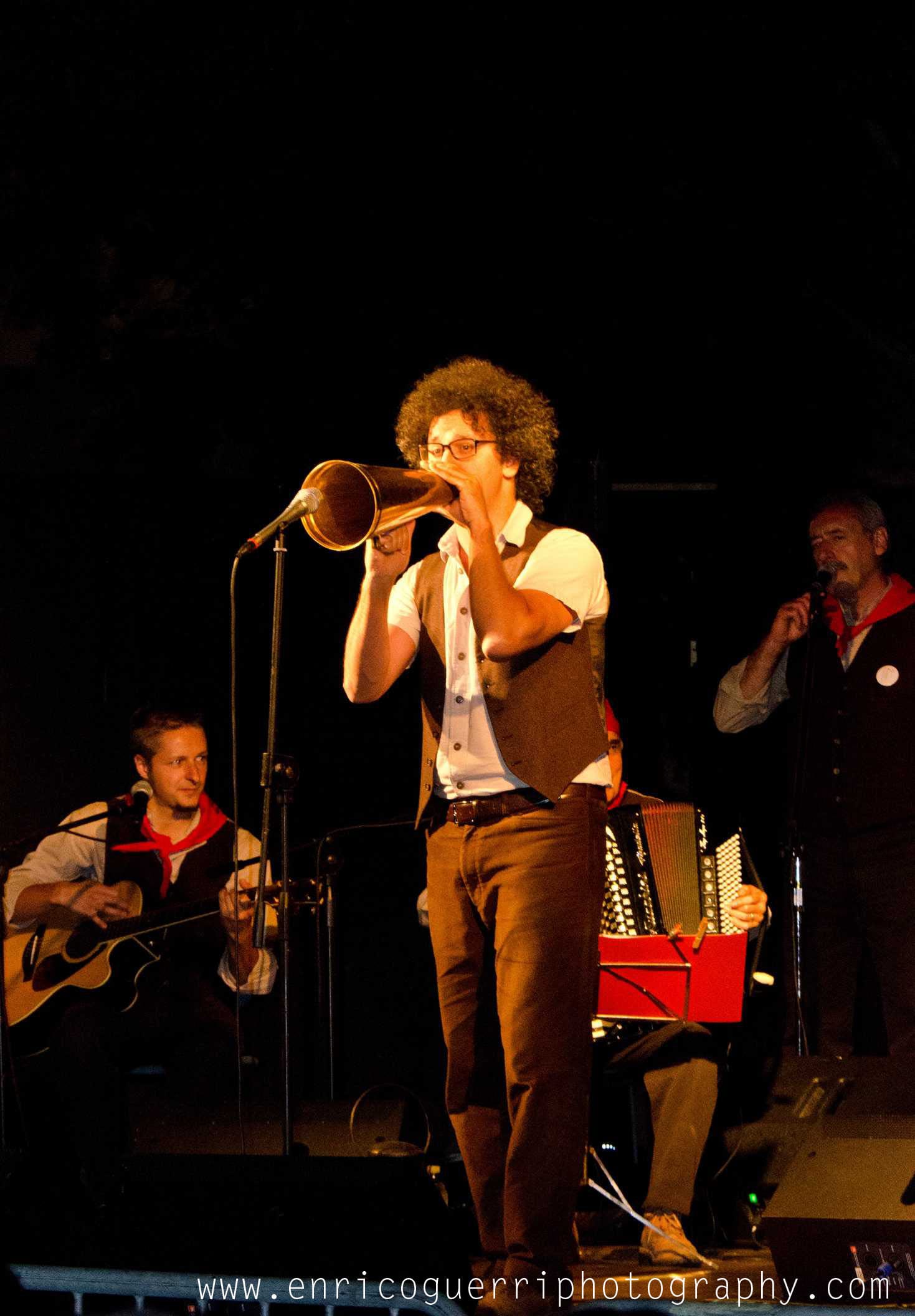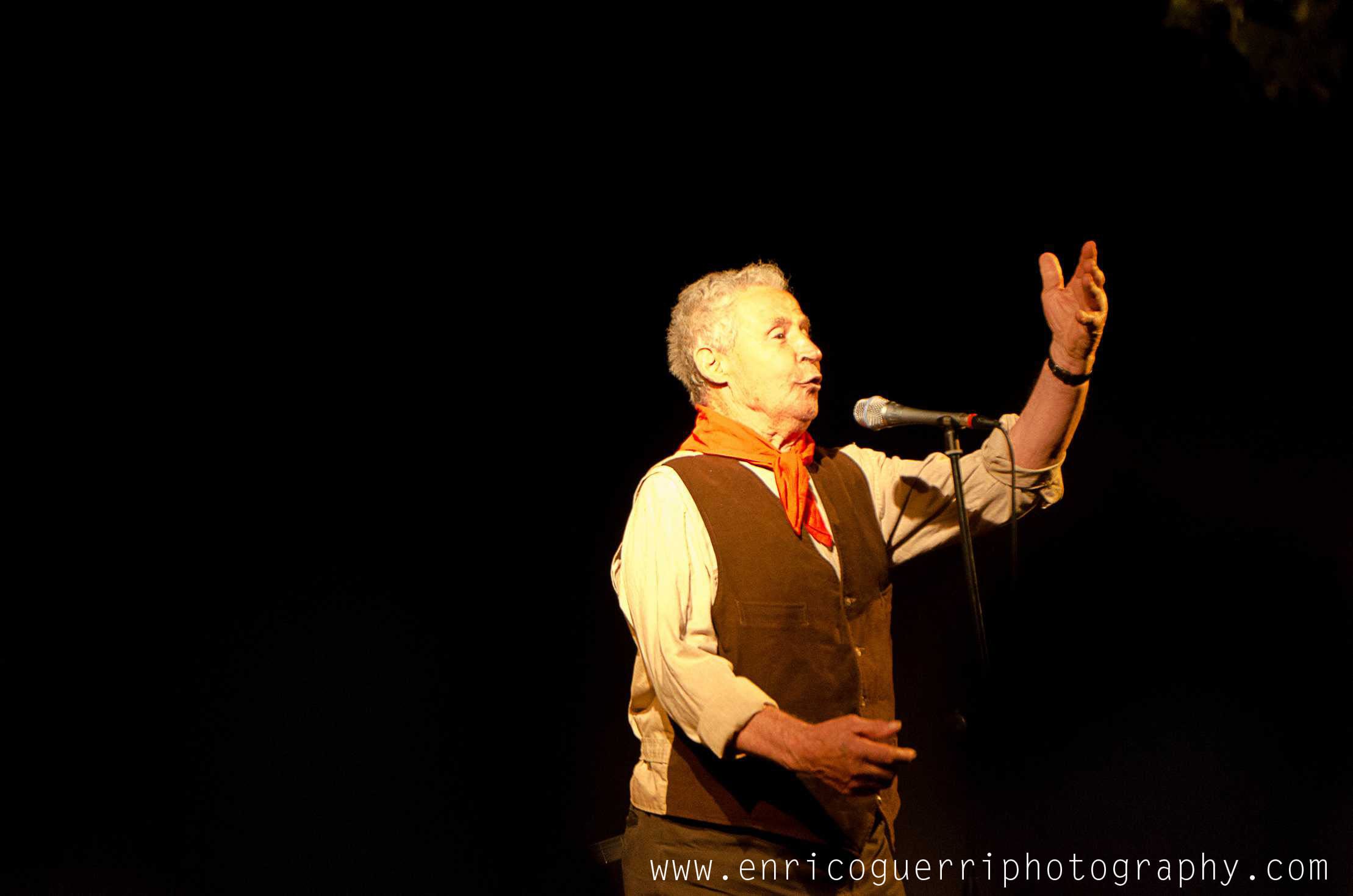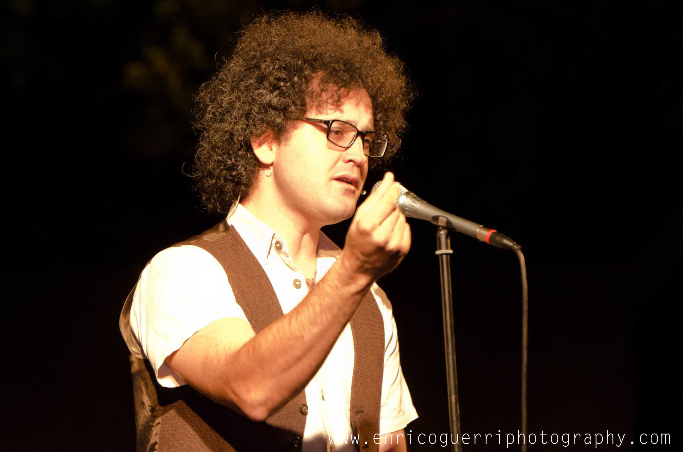 Il pubblico fa un lungo applauso, alcuni borbottano. L’età media è abbastanza alta, ci sono pochi ragazzi/e under 25-30. Le persone che sono arrivate presto e/o abitano vicino si sono accaparrate i posti centrali fronte palco a sedere, alcuni si sono portati la sedia da casa, altri stanno seduti nel prato, altri ancora in piedi. Io invece giro e da rigiro in cerca di una postazione fotografica ad hoc in cui stabilirmi, ma non la trovo e continuo il mio girovagare, laterale al palco lato sx piuttosto che il dx, alle volte dal fondo o altre postazioni incastrate trovate per caso, ma molti non gradiscono che qualcuno si intrufoli e gli soffi il posto e si stabilisca con una reflex, un cannone montato ed un flash che illumina il circostante per aiutare la luce del palco.
