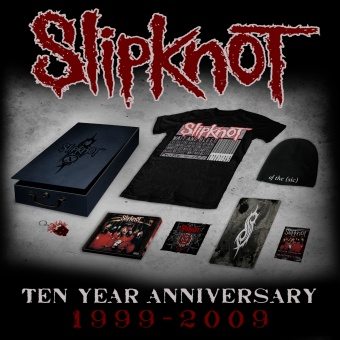 Abbiamo già scritto diverse volte di “Slipknot 10th Anniversary Reissue“, la riedizione dell’omonimo disco degli Slipknot del 1999, arrivano ora tutti i dettagli in merito. “Slipknot 10th Anniversary Reissue” sarà pubblicato negli USA il 9 Settembre 2009, cioè 9/9/9, per evidenziare la ricorrenza del numero 9 nel gruppo dato che 9 sono anche i componenti della band, invece in Italia arriverà due giorni dopo, l’11 Settembre 2009. L’album sarà composto da un CD in cui sono contenute 25 canzoni, le 16 dell’album originale più 9 bonus track, da un DVD contentente il filmato “Of the (sic): Your Nightmares, Our Dreams“, a cura del Clown Michael Shawn Crahan, in cui vengono ripercorsi gli esordi degli Slipknot, saranno inoltre presenti un concerto mai pubblicato prima del Dynamo Open Air 2000 ed i video di “Spit It Out”, “Wait And Bleed” e “Wait And Bleed (animated version)”. In occasione dell’uscita di “Slipknot 10th Anniversary Reissue”, la band dello IOWA ha organizzato un festival a Des Moines, città che ha dato i natali al gruppo, il 9 Settembre 2009, nel quale saranno presenti due palchi, in quello princiale si esibiranno gli Slipknot come headliner mentre nel secondo ci saranno alcune band locali. L’artwork dell’album conterrà delle foto inedite ed una nota scritta dal cantante Corey Taylor. Oltre alla versione citata sarà messa in vendita anche un’edizione limitata dal titolo “SLIPKNOT – 10 years of life death love hate pain scars victory war blood and destruction“, il cui packaging sarà un box di metallo che conterrà il CD ed il DVD “Slipknot 10th Anniversary“, una T-Shirt, una toppa, cartoline da collezione, un portachiavi e altro materiale. Questa l’artwork di “Slipknot 10th Anniversary Reissue”