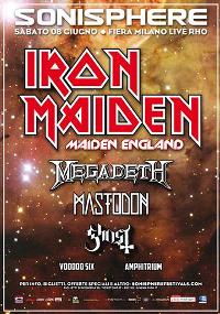 Il Sonisphere Festival 2013 di scena l’8 Giugno prossimo presso la Fiera Milano Live di Rho ospiterà, come già annunciato, gli Iron Maiden. Sarà una giornata in cui, oltre alla band capitanata da Bruce Dickinson e Steve Harris, si esibiranno anche altre bands del panorama metal internazionale. I nomi che accompagneranno il gruppo heavy metal britannico al Sonisphere 2013 sono stati svelati con grande gioia per gli amanti dell’ heavy headbanging.