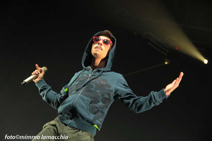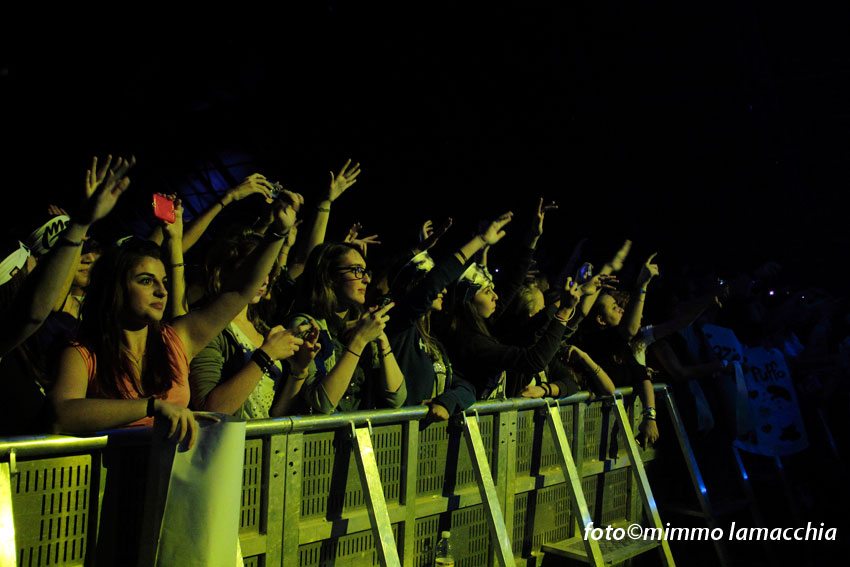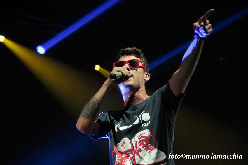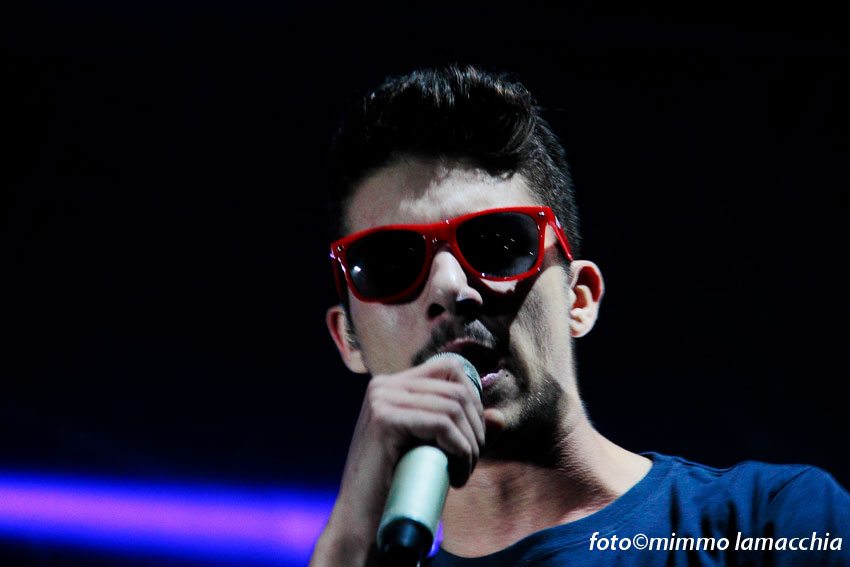 La serata si è sviluppata in un clima di festa e divertimento che ha coinvolto intere famiglie, con ragazzini e bambini che saltellavano e cantavano le canzoni di Moreno ancor prima dell’attesissimo concerto. Intorno alle 21,30 si spengono le luci e il palco si trasforma in un dj set dove fa il suo ingresso, il rapper Dari che introduce lo spettacolo caricando e riscaldando i fan.